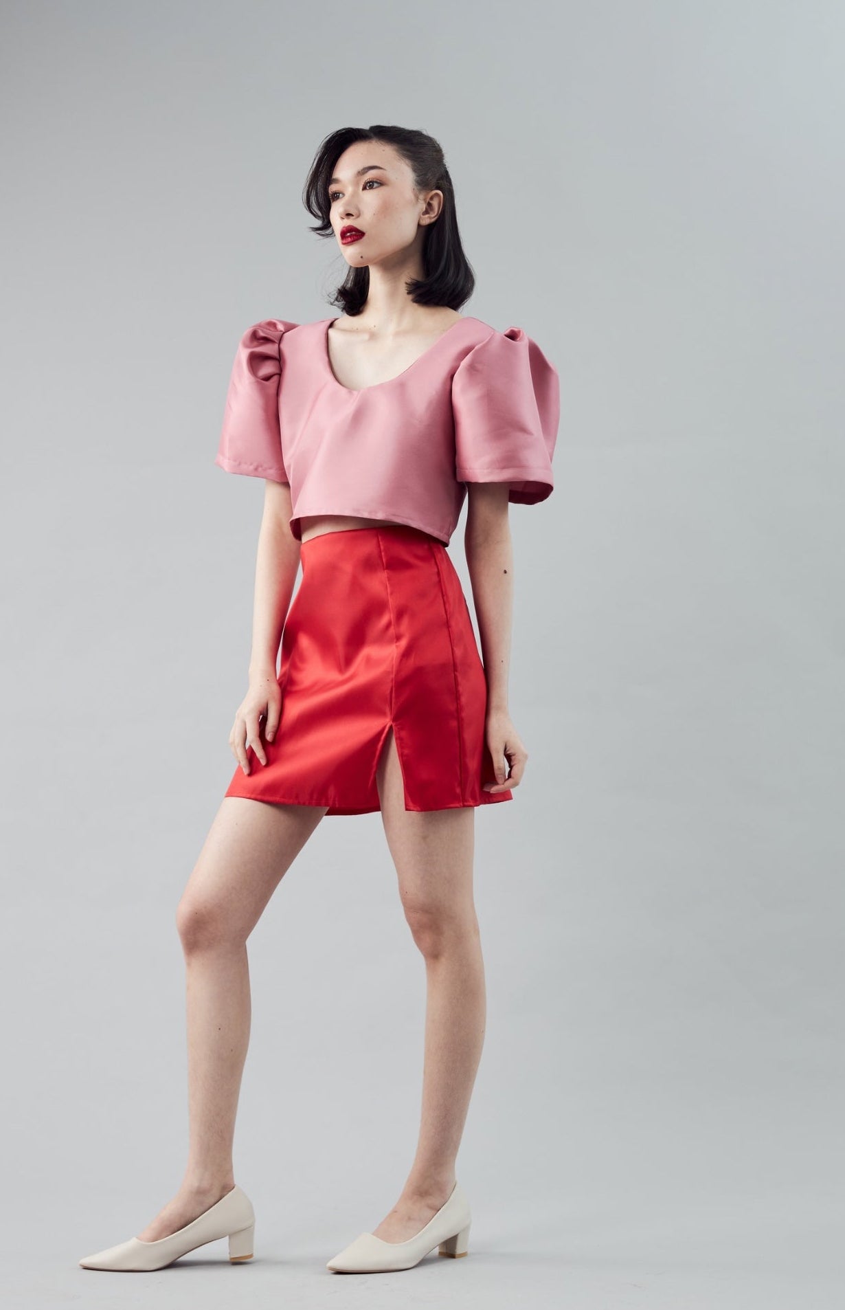 Designed with a soft V neckline and statement puff sleeves, the Holly Rose Top brings a modern, feminine touch to any look. The clean cropped silhouette pairs beautifully with the matching skirt, creating a balanced and flattering shape that feels polished yet effortless.